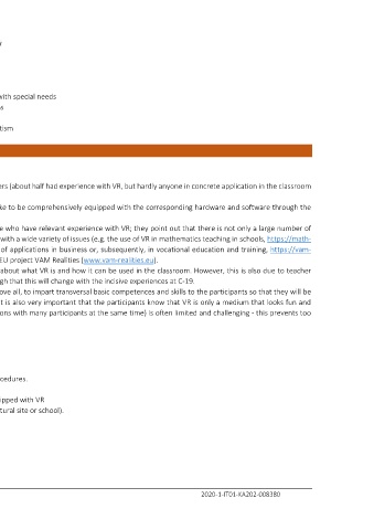 reality.eu, in inclusive teaching of SEN students, https://vr4gifted.com, or the promotion of applications in business or, subsequently, in vocational education and training, https://vam-