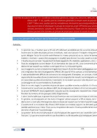 Ensemble de questions N° 4 - 2.4 Conditions préalables générales, exigences, obstacles, défis, etc. lors de l’application de la VR à la formation pro / aux stages, avec une attention particulière pour les