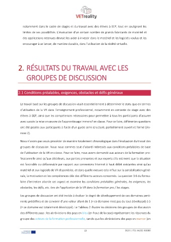 groupes de discussion. Nous nous sommes tout d’abord intéressés aux conditions préalables de base