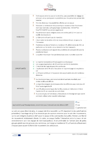 OPPORTUNITÉS L'application de la VR dans l'éducation et l'apprentissage est en plein es-