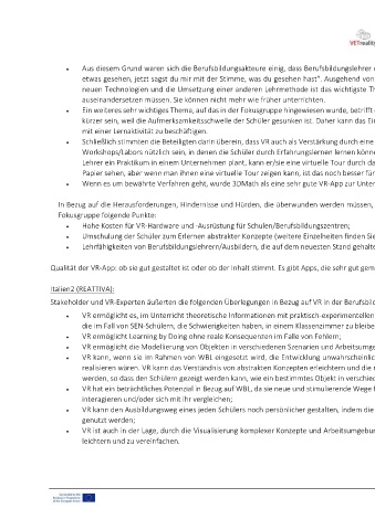 Stakeholder und VR-Experten äußerten die folgenden Überlegungen in Bezug auf VR in der Berufsbildung und insbesondere in der WBL: