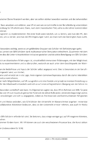 Zielgruppe von Lernenden in der Berufsbildung und von SEN sehr vorteilhaft sein kann, da das von VR zum Ausdruck gebrachte Potenzial die aktive Rolle jedes Lernenden begünstigt und es