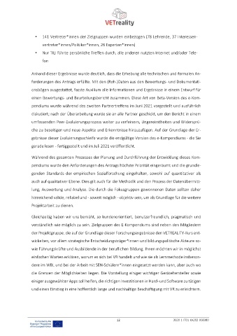 der Projektgruppe, die auf der Grundlage dieser Forschungsergebnisse den VETREALITY-Kurs ent-