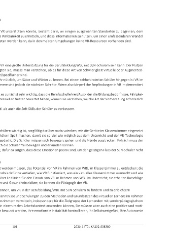 Im Allgemeinen waren sich die Berufsbildungsexperten und Interessenvertreter einig, dass VR eine große Unterstützung für die Berufsbildung/WBL mit SEN-Schülern sein kann. Der Nutzen