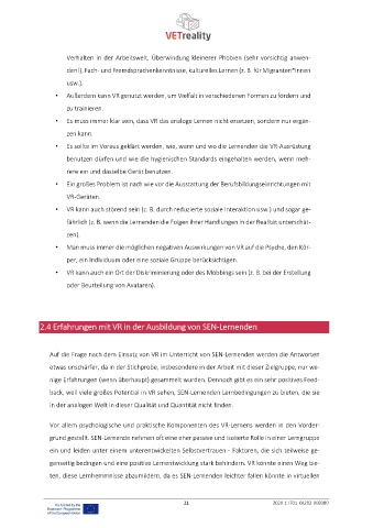 2.4 Erfahrungen mit VR in der Ausbildung von SEN-Lernenden