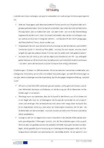 Empfehlungen - 7) Arbeit mit SEN-Lernenden: VR-Lernen erfordert bestimmte intellektuelle, psy-