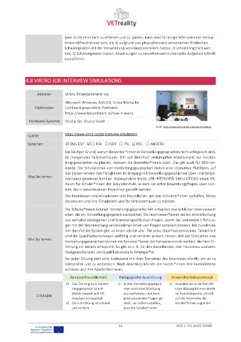 vertrauen gewinnen können. Insbesondere bietet JOB INTERVIEW SIMULATIONS einen VR-