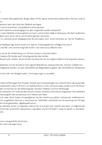 sagten sie, dass es für sie nützlich wäre, neue und innovative Methoden zu lernen, um den Inhalt des Unterrichts spannender zu gestalten. Durch VETREALITY wäre es ratsam zu verstehen,