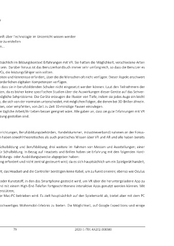 gruppe teil, die sich an Berufsbildungsakteure und Experten richtete. Die meisten von ihnen haben sowohl theoretisches als auch praktisches Wissen über VR und AR und alle haben bereits