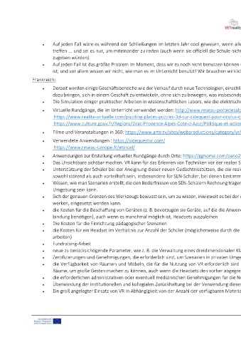 die Verfügbarkeit von Räumen und Möbeln, die für die Nutzung von VR erforderlich sind (360°-Drehstühle, damit der Körper des Schülers der Bewegung der Aktivität folgt, relativ große