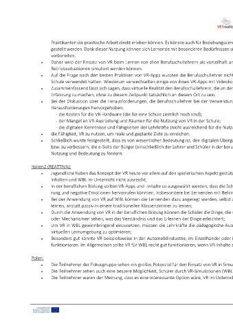 Zusammenfassend lässt sich sagen, dass virtuelle Realität den Berufsschullehrern, die an der Fokusgruppendiskussion teilgenommen haben, die Möglichkeit bietet, eine andere und prägende